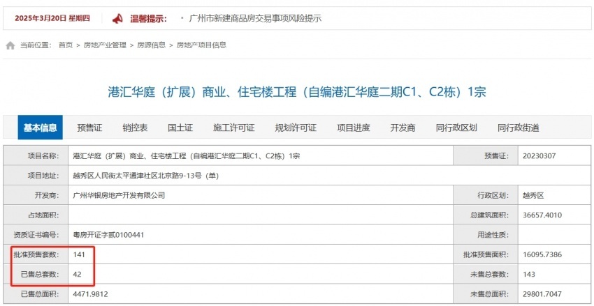 市场数据显示,港汇台首次开盘四个月仅8套房完成网签。2024年底为促销回笼现金,部分房源暗降5000元/㎡促销,进一步暴露价格虚高本质。截至发稿,阳光家缘显示其批准预售套数为141套,已售总套数仅为42套,去化率不足30%。