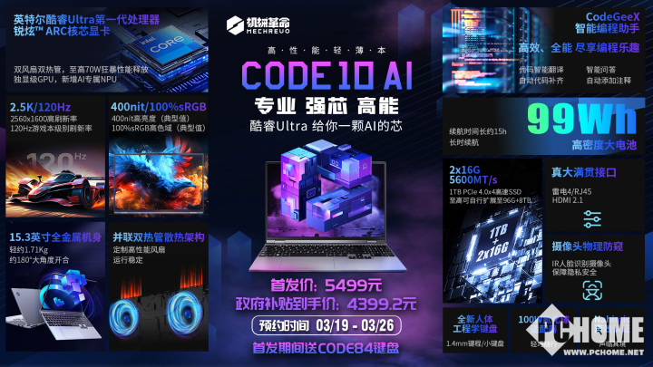 机械革命现已上新了Code 10 AI轻薄本,以AI为蓝本,搭载酷睿Ultra7 155H AI处理器并预装智谱CodeGeeX NANO,为用户带来更加高效的代码撰写能力。目前该款轻薄本已经在国内平台上架并且开启预约,首发价5499元,首发即支持国补,国补后到手价4399.2元。