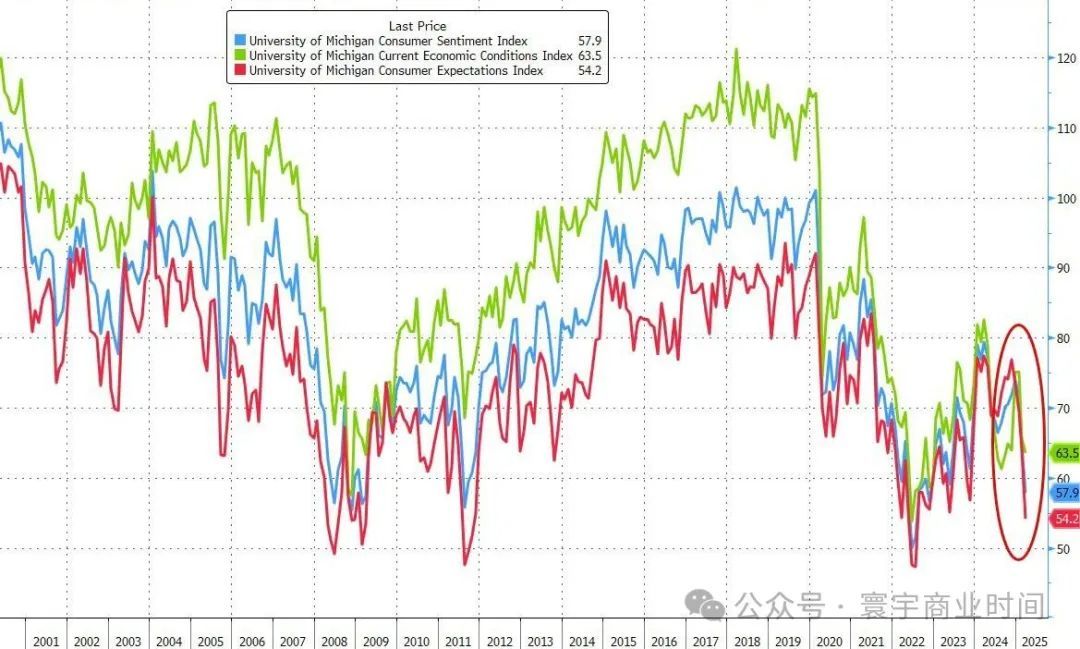 消费者和企业信心的崩塌以及美国股市的下滑相呼应,表明人们对美国政府的贸易政策的担忧日益加剧,担心美国经济正在陷入滞涨风险,甚至有可能引发衰退。