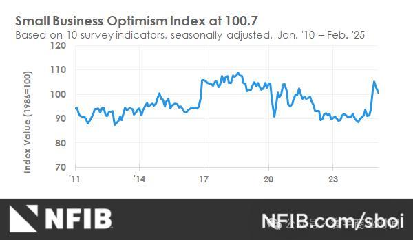 上周二发布的报告是2025年2月的中小企业调查情况,结果显示美国中小企业乐观情绪消退,正陷入对经济衰退的巨大悲观之中。