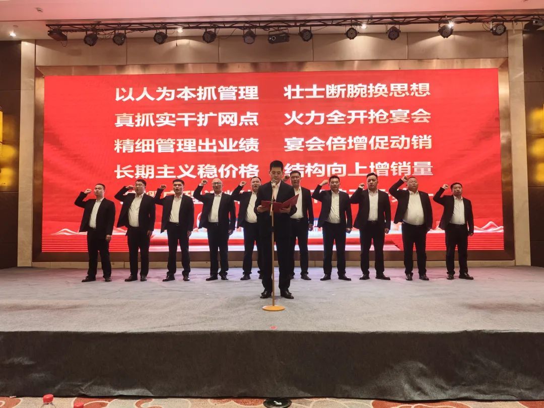 在激昂的宣誓环节,郑州销售中心与推广中心负责人分别签订军令状,上官绪有、马锋带领全员郑重承诺,将年度目标细化至终端执行与客户服务中,铿锵有力的声音响彻会场,吹响了郑州市场决胜2025的冲锋号。
