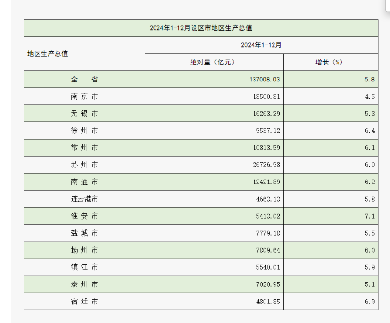 2024年江苏13市GDP数据