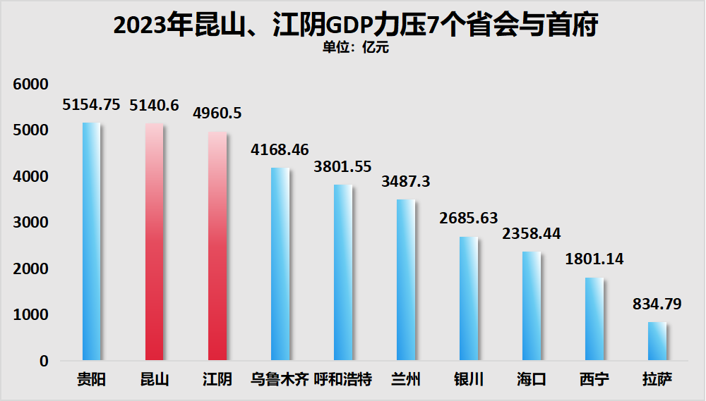 2024年,江阴市GDP突破5000亿元,成为继昆山之后的第二个5000亿大县。