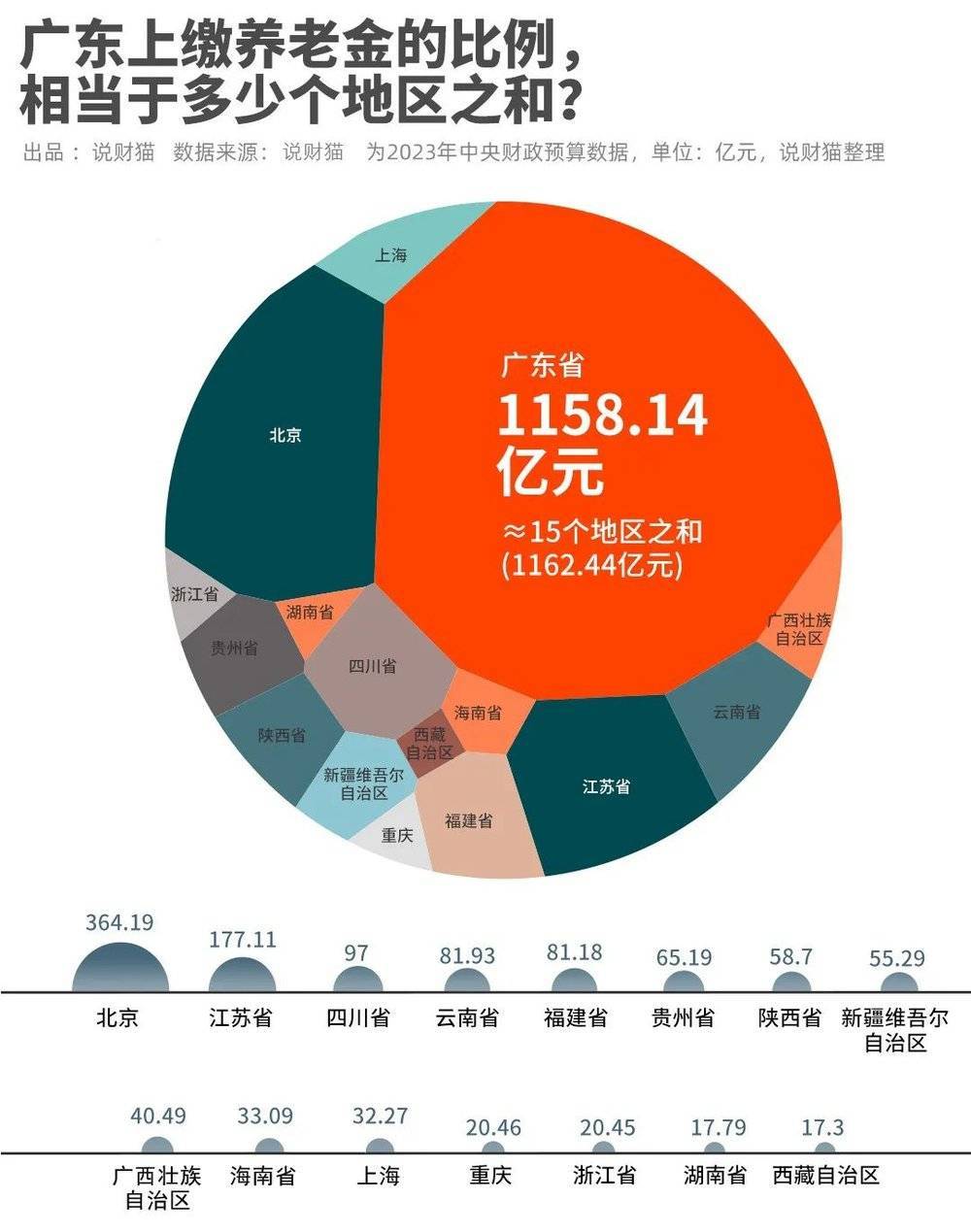 广东上交养老金比例相当于15个地区的总和。图片来源:说财猫