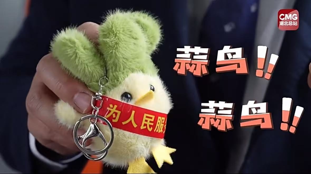 九派新闻曾报道,“蒜鸟”还出现在武汉603路公交车驾驶室安全门上,它披挂上“为人民服务”红色绶带,化身“劝和鸟”调解乘客纠纷。