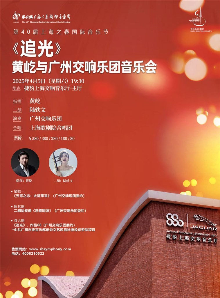 东方网记者费一妍3月21日报道:4月5日,广州交响乐团将在音乐总监黄屹的执棒下,与上海歌剧院合唱团合作,在上海交响音乐厅上演“追光”音乐会。这也是今年上海之春国际音乐节的参演项目。