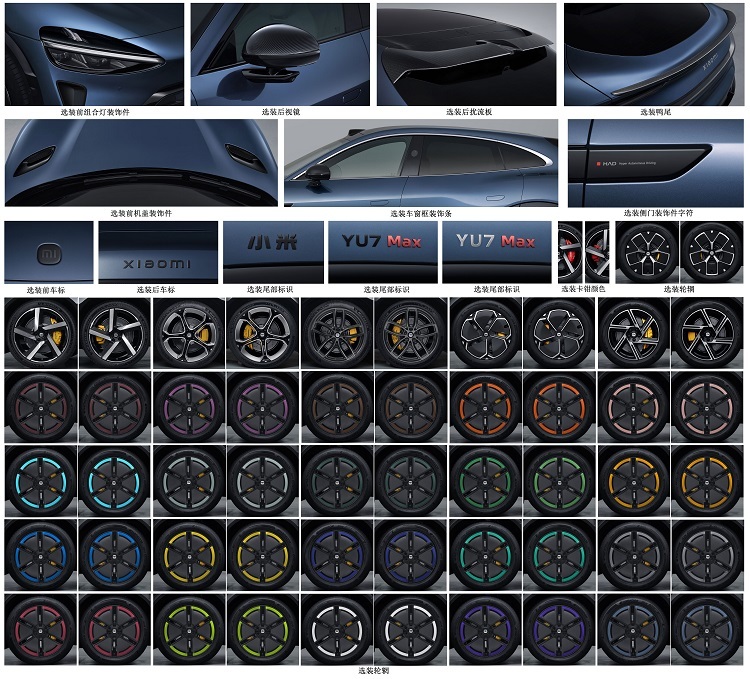 此次公布的照片,还曝光了小米YU7的其他一些选装细节,例如车头大灯组、刹车卡钳配色、后视镜造型、扰流板以及开孔前机舱盖等,相比SU7配置更加丰富。