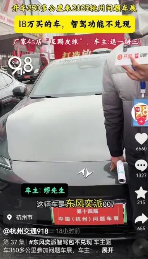 事实上,除了武汉朱先生的东风奕派eπ008所曝出的电池包故障导致失速、AEB(主动刹车功能)辅助驾驶误触问题外,今年315杭州问题车展上,还有东风奕派eπ007的消费者曝出其入手的“智驾包”功能存在未兑现的问题,认为厂家虚假宣传,希望厂家能够对智驾包退一赔三等问题。以及更早的eπ007红色卡钳变“红色卡钳罩”等问题。