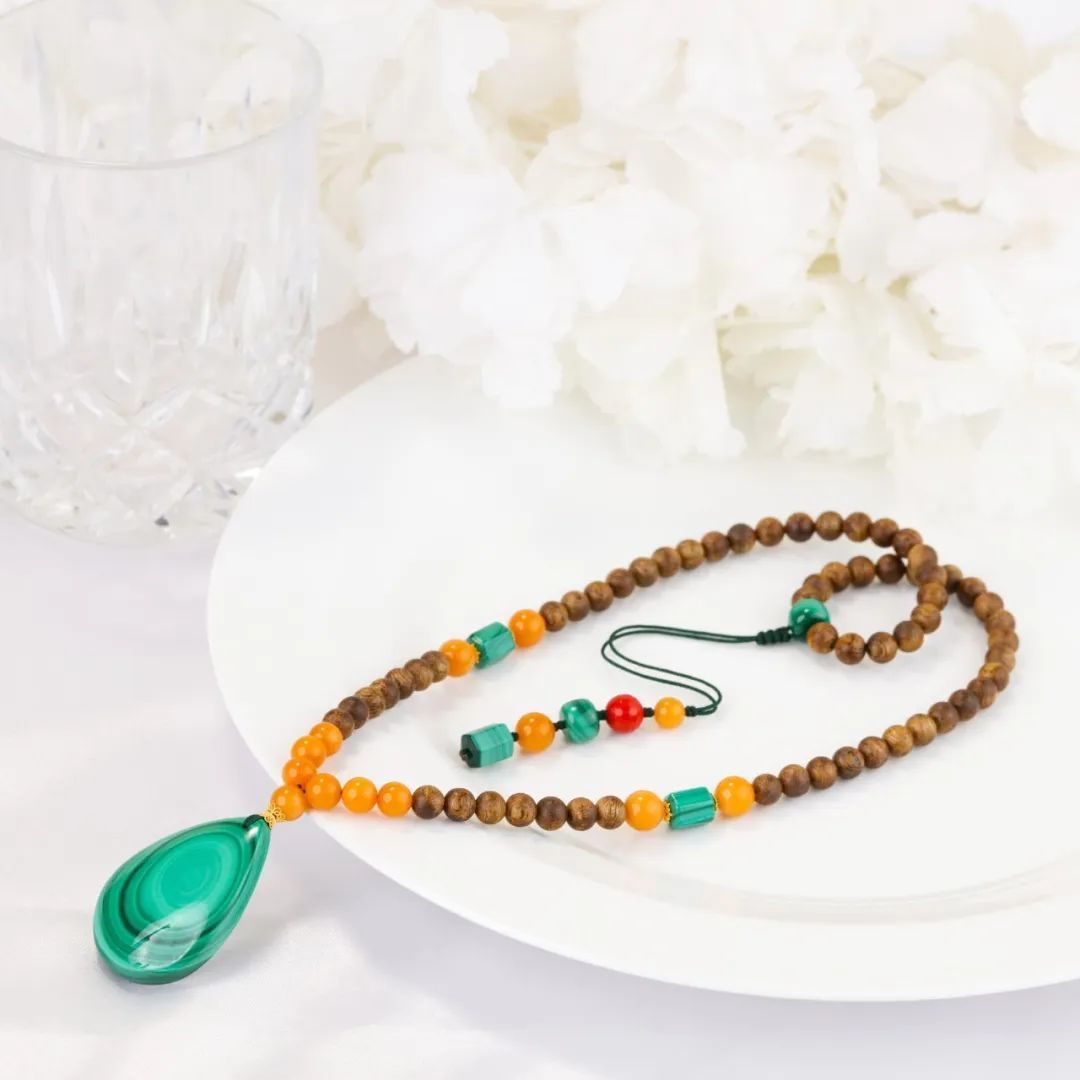 孔雀石是古埃及的神石,它像孔雀石一样的色彩,象征着希望,特别是它的纹理,我们特别选用这块漩涡纹来做吊坠,代表的是一个轮回与新生,吸收负面的东西。