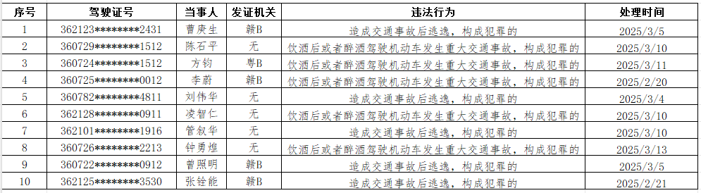 终身禁驾名单