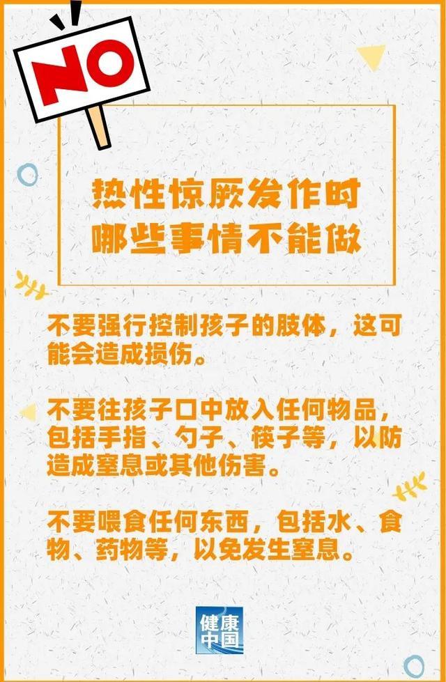 目前,热性惊厥无法预防,退热药物虽然可以缓解发热症状,但不能预防热性惊厥发作,也不会降低热性惊厥复发的风险,但仍建议家长在孩子发热时进行积极的退热处理。由于退热药物有相应的不良反应,家长应按照医嘱和药品说明书常规使用退热药物,避免过度使用。