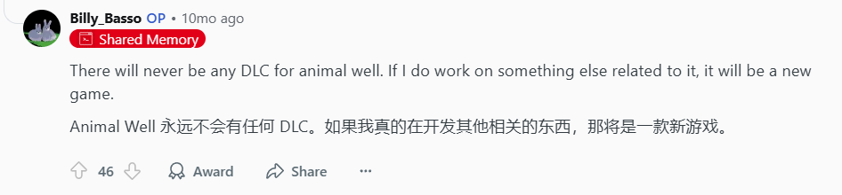 如果要问《动物井》的成功有哪点值得学习的话,许多人应该都会将目光投向宣发的重要性——在独立游戏开发门槛无限降低的今天,我们的确能看到泛滥成灾的“辞职贷款卖房做游戏”的宣发策略。假设Basso没有找到Dan,假设他们没有得到游戏驴子的帮助,循规蹈矩开发游戏的Basso是否能收获如今的成就?这个问题恐怕Basso自己也不好回答。