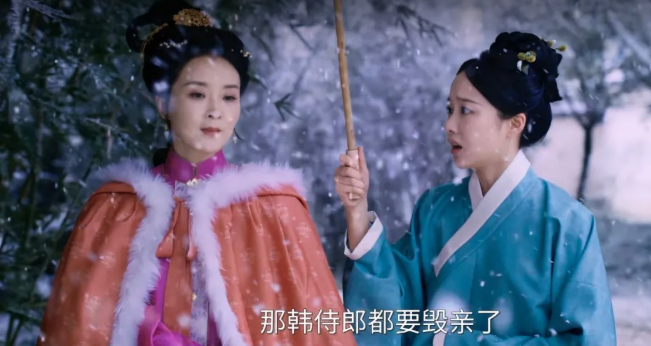 只见她身着一身橙色的披风,在雪中快步行走,一边走一边和丫鬟解释着“不能怠慢三小姐”。