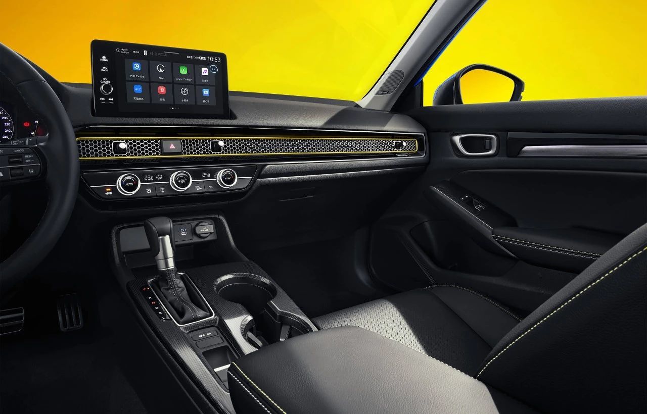 内饰延续本田简洁实用风格,但在用料与科技配置上有所提升。中控台采用软质搪塑与金属饰条组合,混动版独享银色中控饰板,搭配10.2英寸全液晶仪表与9英寸悬浮式中控屏。车机系统升级为Honda CONNECT 4.0智导互联,支持CarPlay/CarLife双平台映射、AI语音控制等功能。