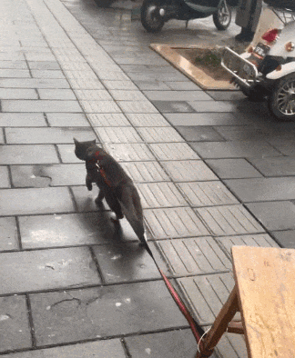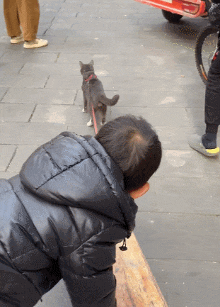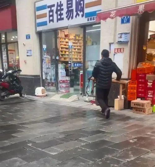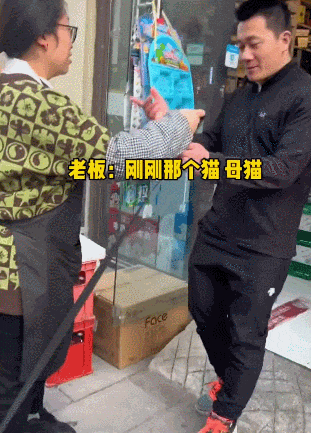 等博主找到小猫主人,也就是一旁商店的老板一问才知道,原来这只叫灰灰的猫这么猛,全是为爱冲锋。