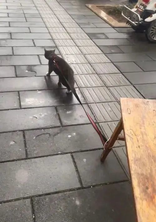 老板担心灰灰的安全,也为了保护附近的母猫,就把它栓到了上面防止它再外出,没想到这一举动却促进了一只肌肉猛猫的诞生。