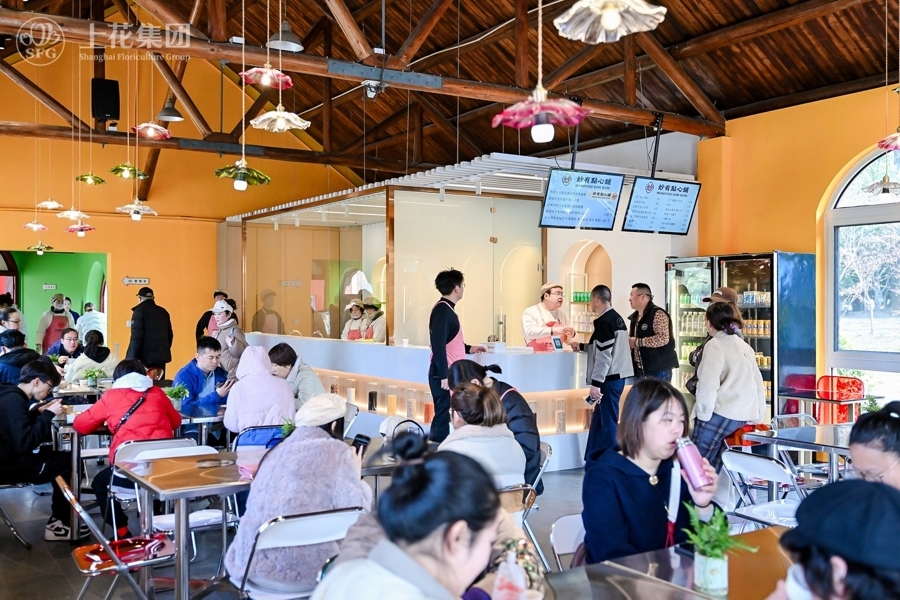 业态场景的多元发展,也对园区配套设施的丰富性提出了更高的要求。针对往年缺少餐饮的短板,今年园区引入了连锁的产品零售超市,也联动光明城市厨房,在花展期间推出美食市集、好德花园零食铺、光明生态采摘、妙有点心铺、花园中心&咖啡、非遗市集等商业配套服务,让游园体验更加舒适、便捷。