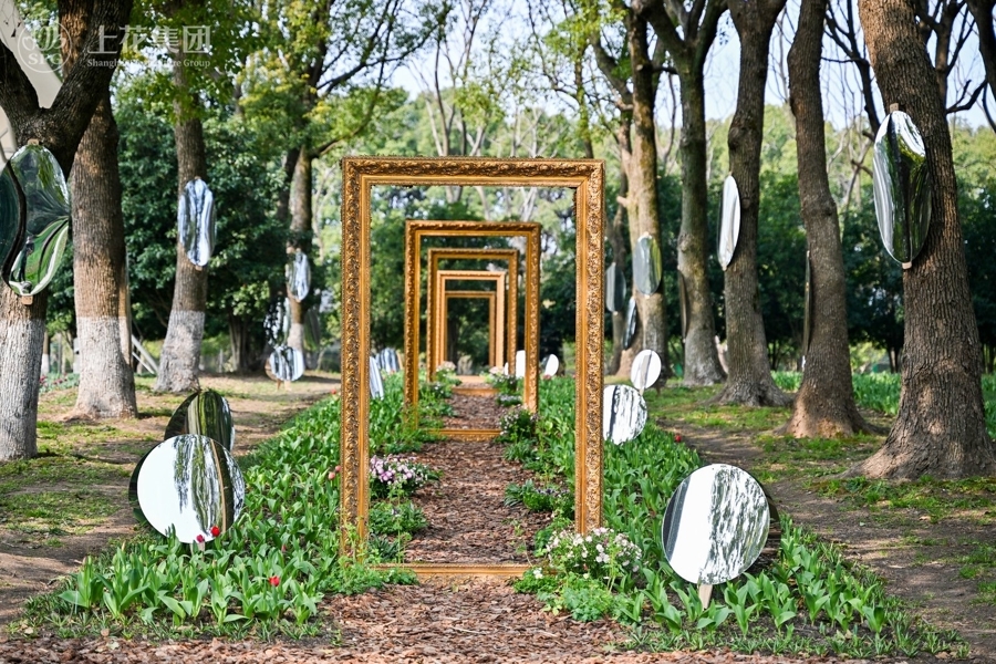 首先是核心景观的重构。上海四季花港改变了公园西区750亩的球根花园传统郁金香的种植模式,借鉴荷兰库肯霍夫公园设计理念,增设人行步道,让游客能近距离接触郁金香等球根花卉。此外,公园还在景观别致的点位打造了若干艺术装置,如四季花港主入口的蝴蝶花坛、粉色沙滩上的钢琴花艺瀑布、复古优雅的鲜花火车等,为游客营造“打卡出片”的好去处。此外,公园还打造了新的景点——爱情岛,除了各色鲜花包裹,这里还打造了五个象征婚姻年轮的艺术地标,带给游客独特的浪漫体验。