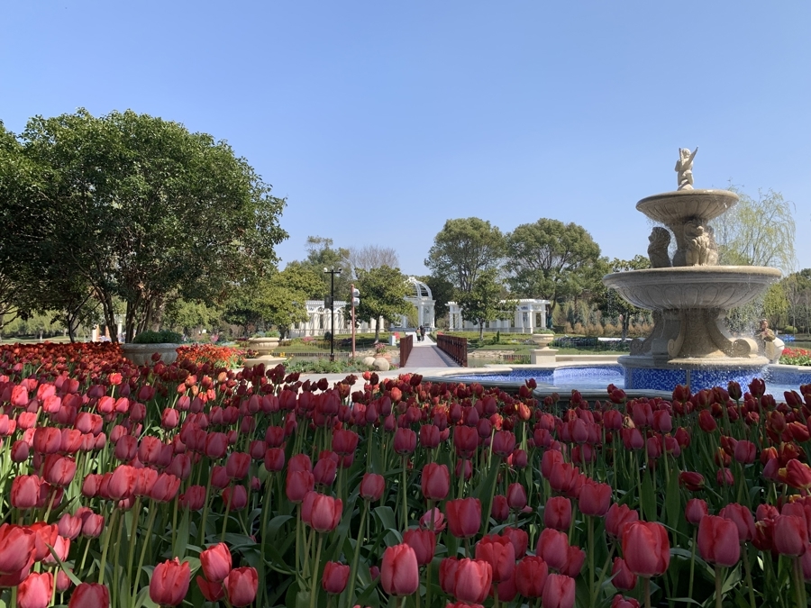 上海三月的春天进度过半,早樱白玉兰后,郁金香迎来最佳观赏期。