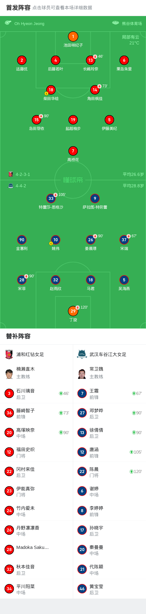 第114分钟,高桥花单刀破门,但越位在先,进球无效