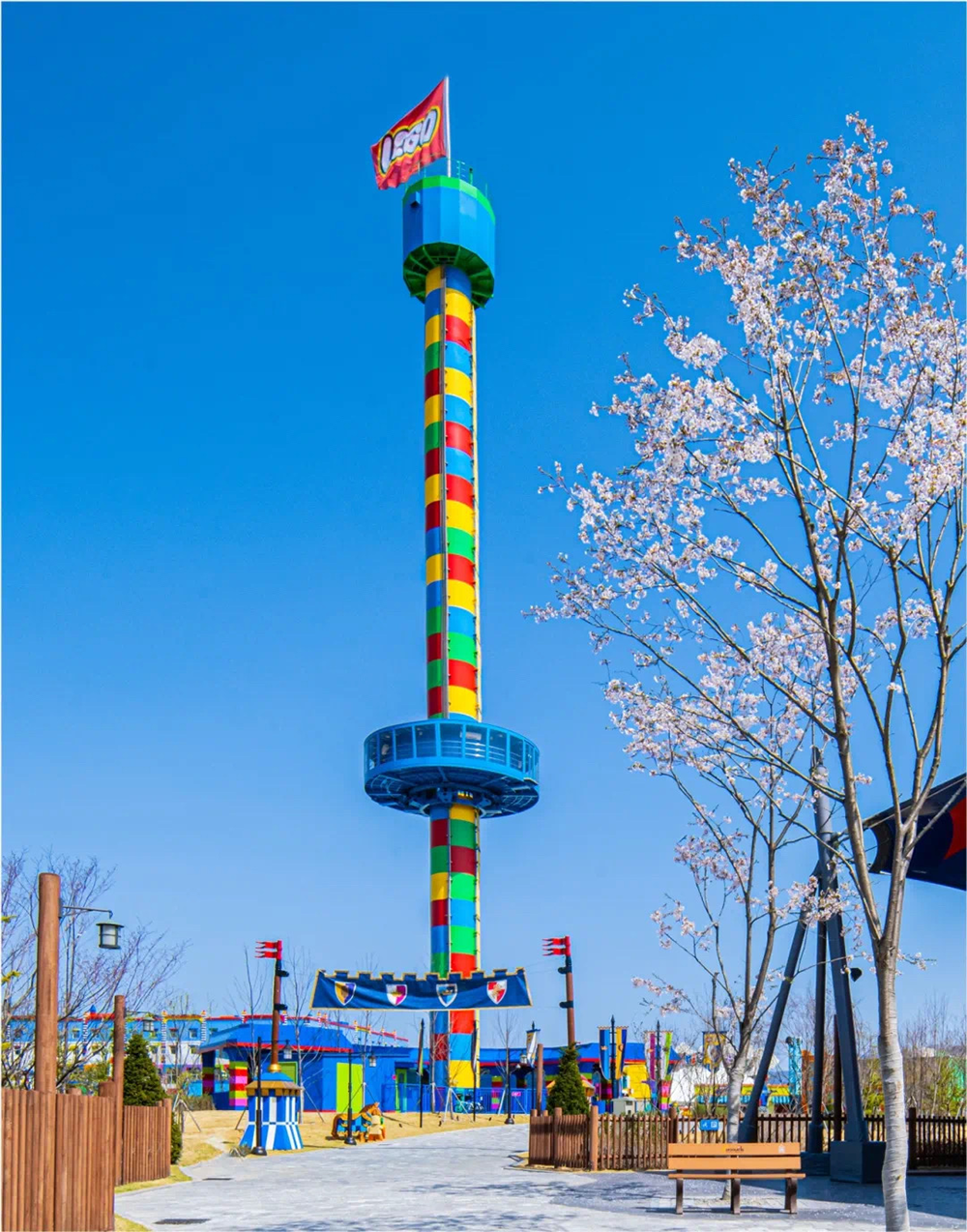 高达60米的观光塔可容纳数十名游客,以360度全景视角俯瞰整个乐园,塔身采用乐高积木风格装饰。