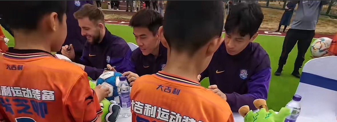 深受球迷喜爱的王秋明、巴顿和阿代米也出现在赞助签约仪式上,不仅和大吉利青训梯队的小球员们进行了各种对抗游戏,还为孩子们签名留念。