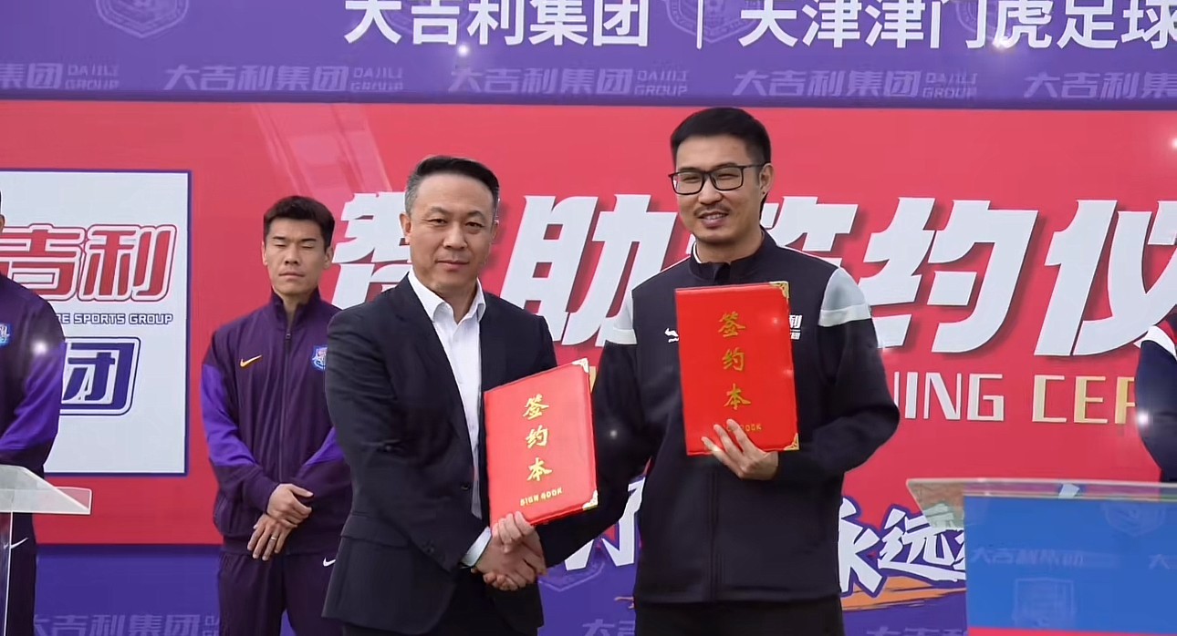 赞助签约仪式上,天津津门虎足球俱乐部相关负责人表示:“天津津门虎队承载着天津球迷的梦想与期望,各项工作不断进步,队伍表现稳步提升,球迷基础日益壮大。这一切成绩的取得,离不开社会各界和广大球迷的支持和帮助。近年来我们和大吉利精诚合作,大吉利为天津津门虎队注入了强大的活力和动力,体现了一个优秀企业对于体育事业的高度责任感和使命感。”