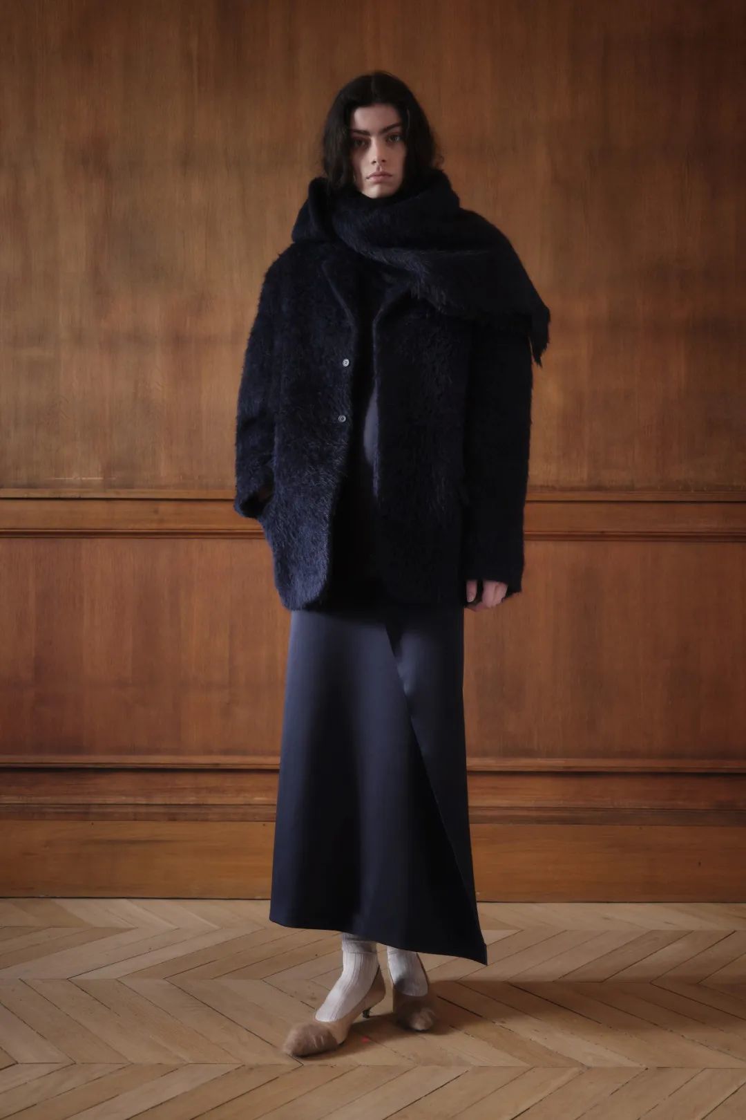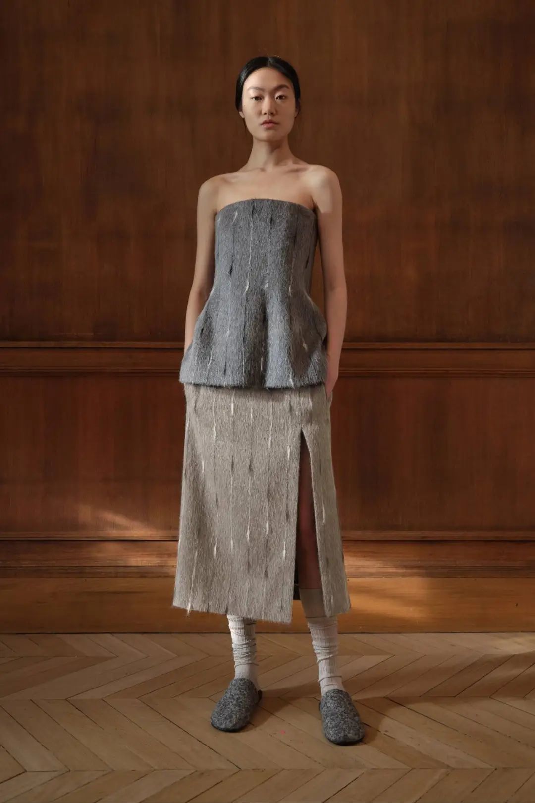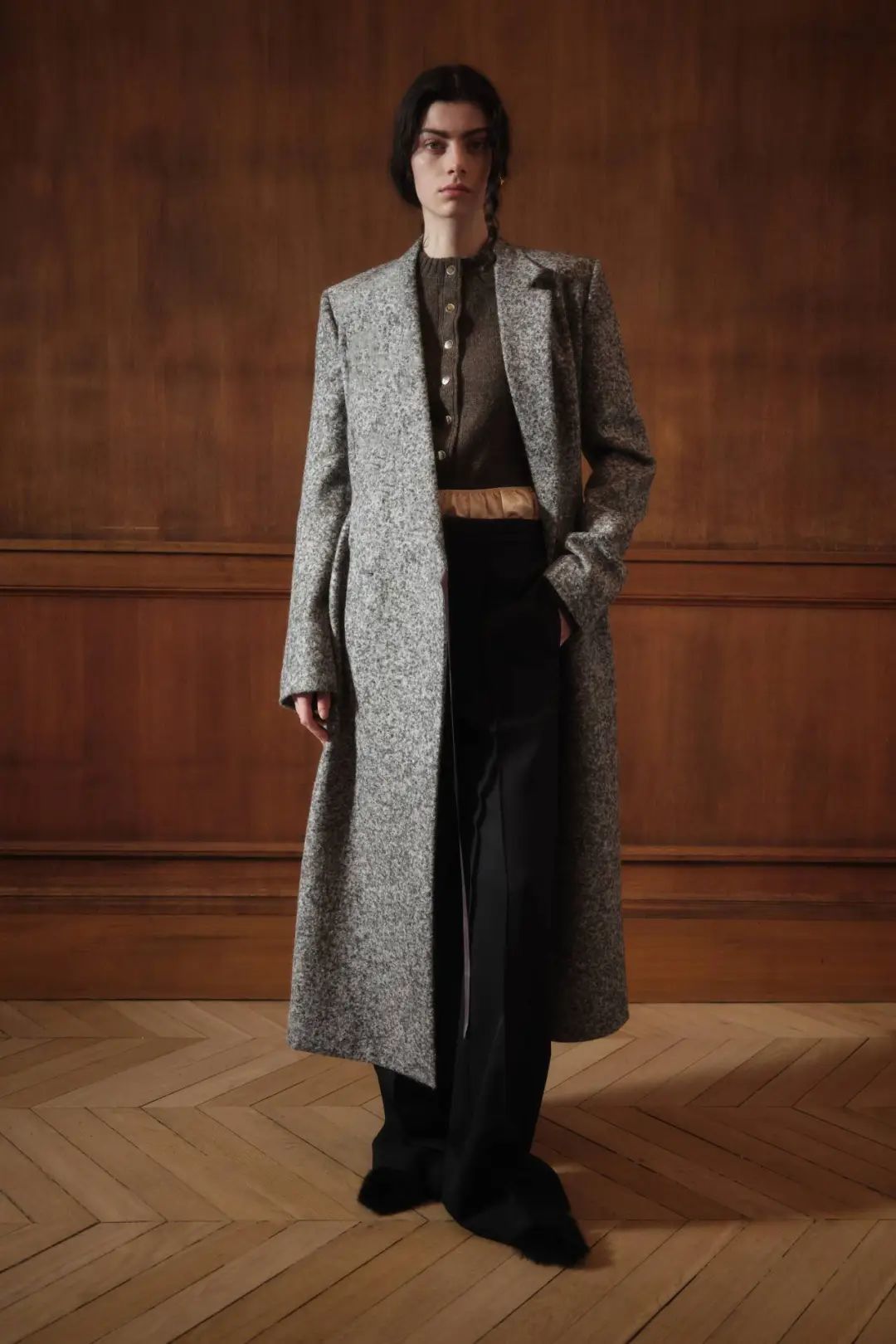 而在刚刚过去的巴黎时装周期间发布的2025秋冬系列就是他主导的首个Carven系列。该系列致敬了品牌创始人Madame Carven在1951年春夏首个成衣系列中设计的「Esperanto」套装廓形。