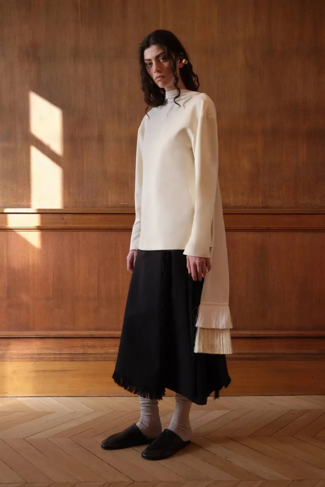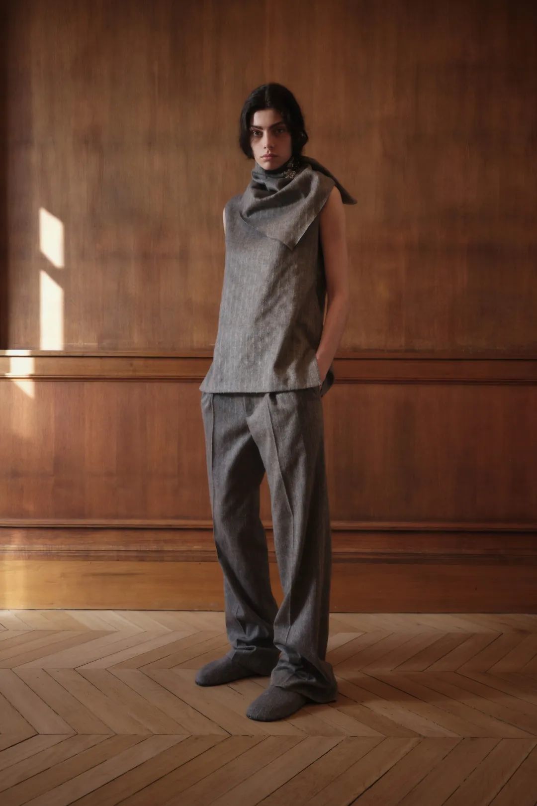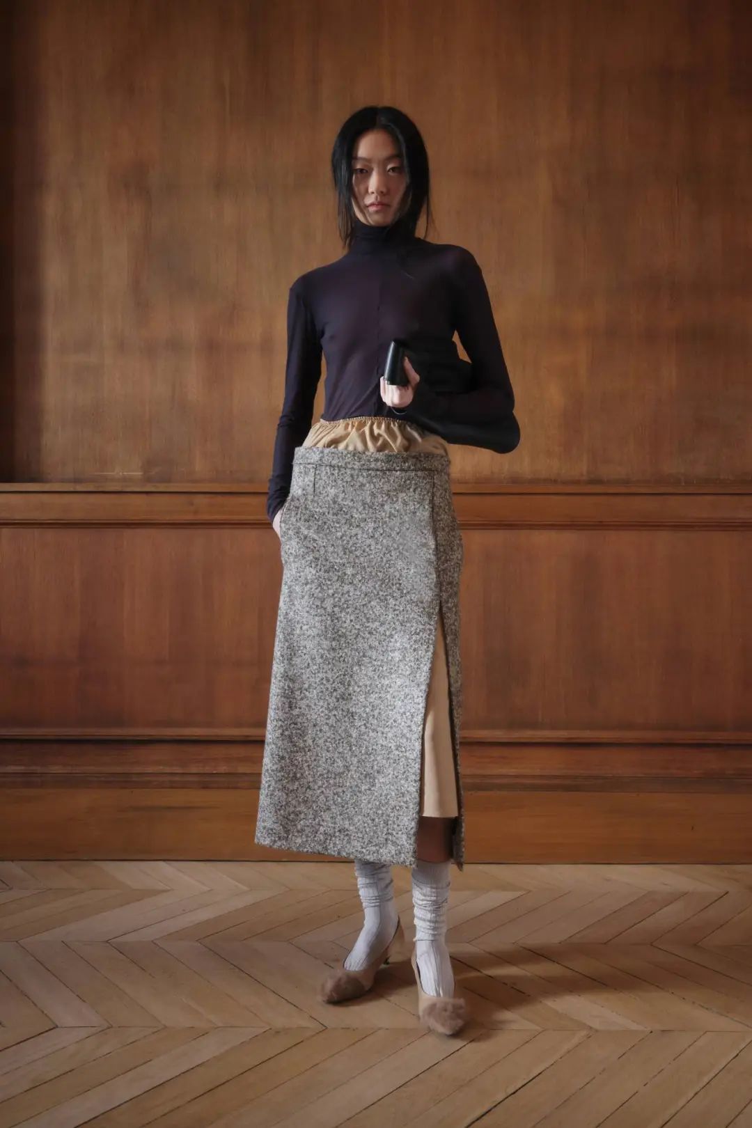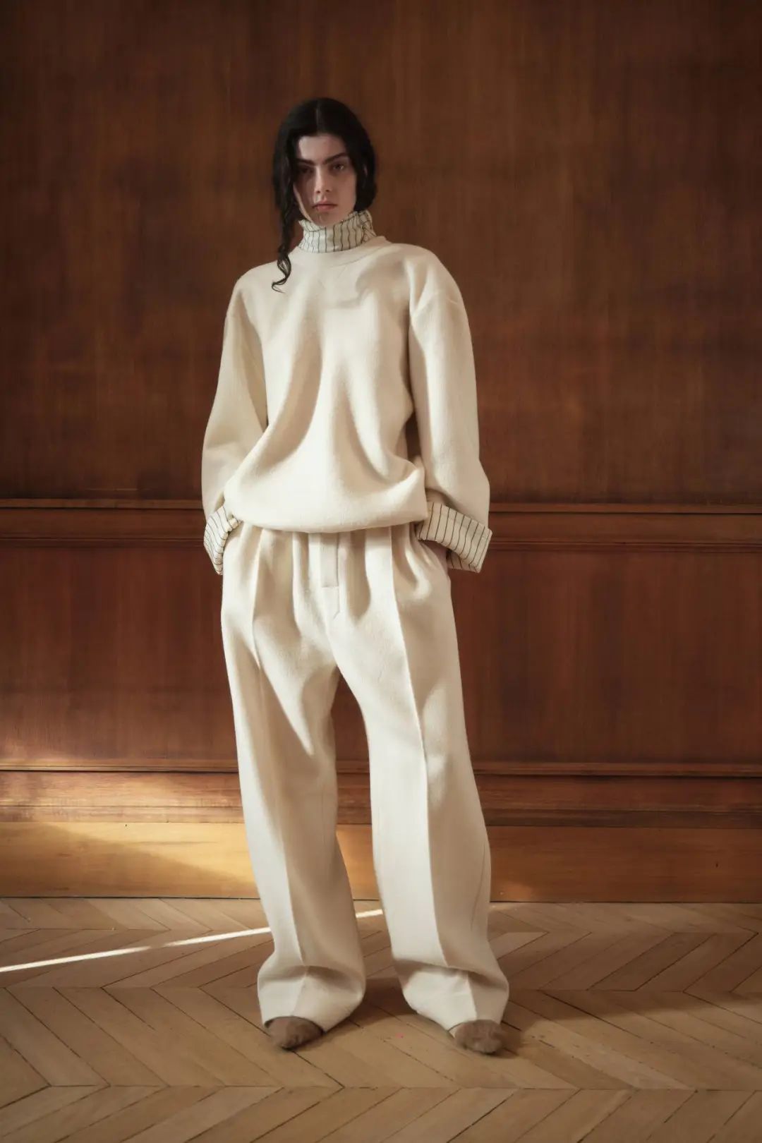 而在刚刚过去的巴黎时装周期间发布的2025秋冬系列就是他主导的首个Carven系列。该系列致敬了品牌创始人Madame Carven在1951年春夏首个成衣系列中设计的「Esperanto」套装廓形。
