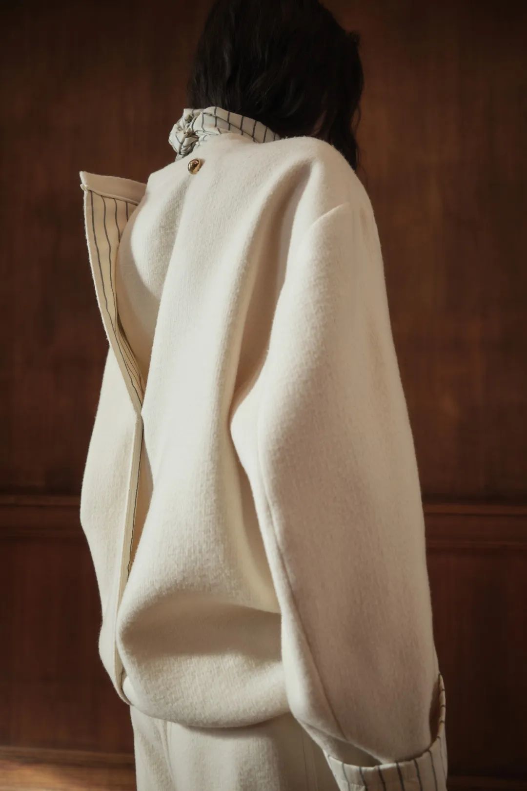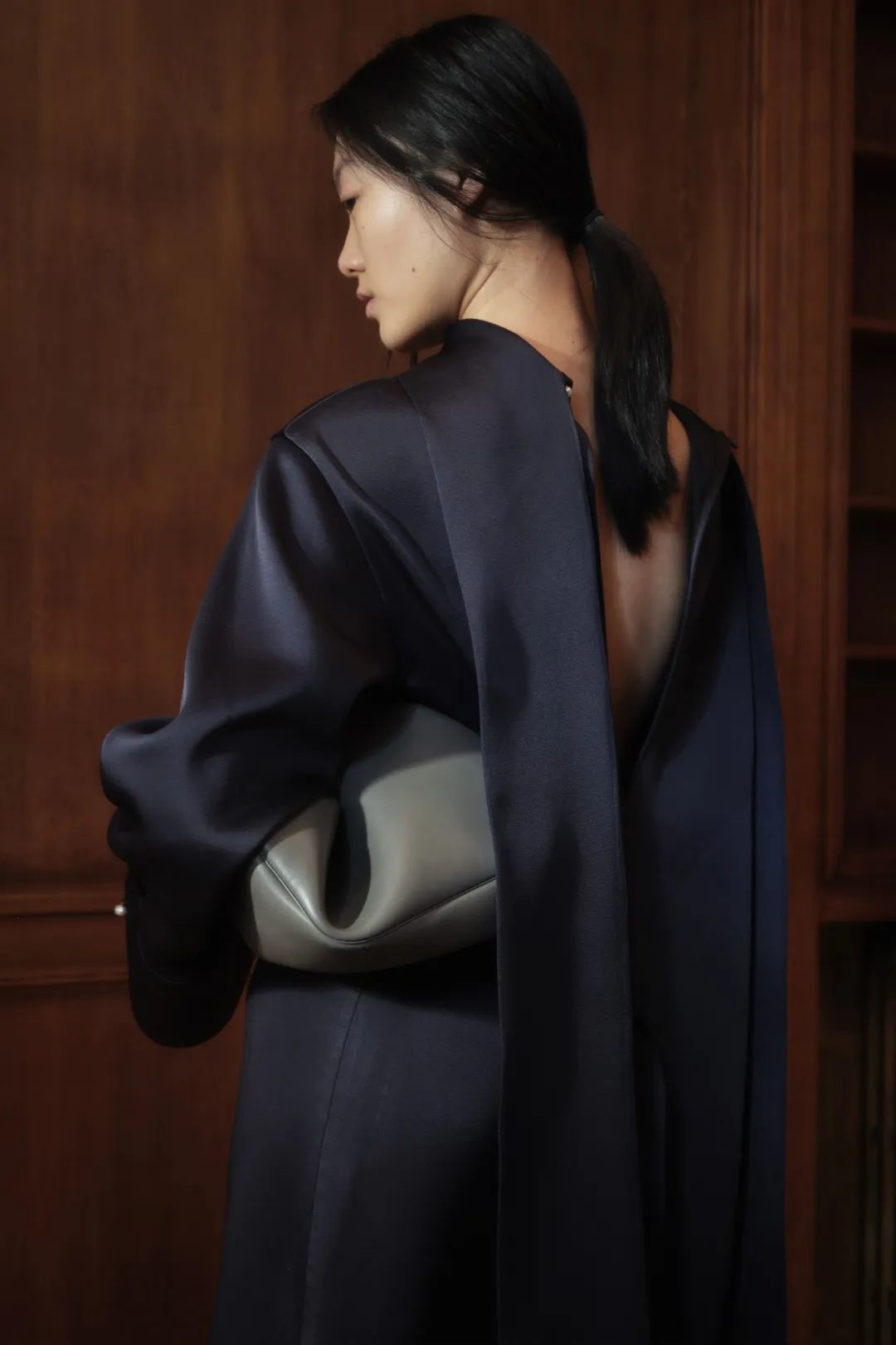 在酒店围绕水景庭院的「回型」环绕式空间中,Max Mara展示了以古希腊女数学家Hypatia为灵感的时装作品,时装结构的西方理性与空间结构的东方诗意巧妙糅合,致敬不同时代背景下的先锋女性精神。其中,以希腊女神名字命名的双排扣西装Max Mara Olimpia作为品牌经典之作,以多种面料呈现。