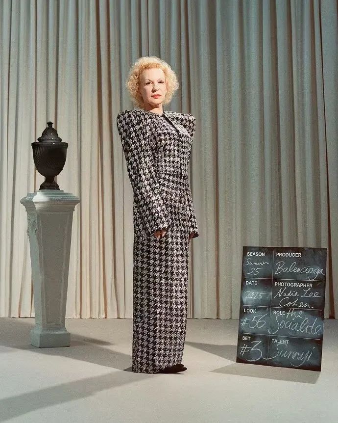 近日,Balenciaga发布夏季25系列广告大片,透过摄影师Nadia Lee Cohen的镜头再现好莱坞经典的角色试装场景,邀请周游、Georgia Ford、Rachel Sennott、Raiki、Mark Eydelshteyn和Coumba Samba等一众著名演员、艺术家和模特,化身为各类电影角色与经典荧幕角色,如天才、记者、艺术家、邻家女孩、魅力女性、乐坛天后等,再现好莱坞黄金时代经典角色试装场景,探索服装、场景、身份与表演之间的关系。