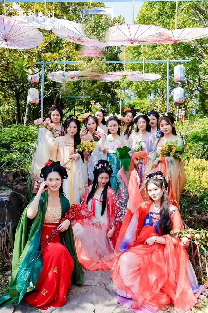 值此佳节良辰,大宁公园以花事为媒,为有情人们搭建锦绣台,邀请10对新人置身国风古韵、花海绚烂的绝美画卷里,在“十二花神”的祝福献礼中共许白头之约,共赴山盟海誓。下午2点,集体婚礼仪式正式拉开帷幕,新人们以一袭精致的明制婚服,携手步入舞台,举手投足间尽显传统服饰文化独有的风华韵味。新人们通过一组融合传统和创新的“同牢、合卺、结发、盟誓”的婚礼仪式,在“花神”和亲朋好友的欢声祝福下,共同谱写了一曲琴瑟和鸣、天长地久的唯美恋歌。活动通过都市绿洲和古风浪漫的巧妙碰撞,灿烂花海与甜蜜爱情的天作之合,营造出清新有趣的婚礼氛围,满足了年轻群体对个性化、特色化婚姻登记服务的需求,吸引了不少热爱传统文化的年轻人参与其中。