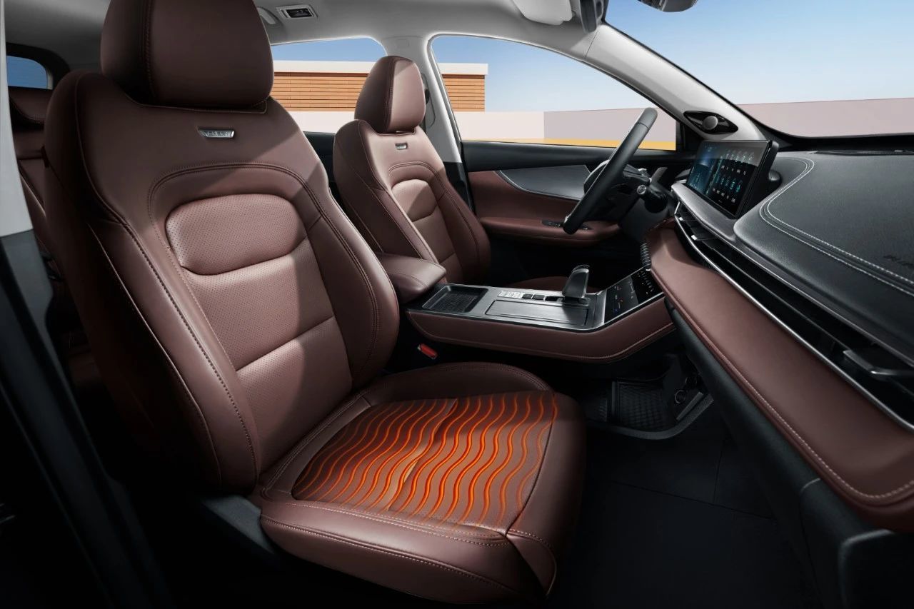 内饰以黑棕撞色设计营造轻奢氛围,24.6英寸双联屏搭载奇瑞自研的LION雄狮智云系统,支持AI语音交互、CarPlay/HiCar互联,操作流畅度与功能性领先同级。触控式空调面板与D型皮质方向盘提升科技感,全系标配仿皮座椅、后排独立出风口与USB接口保障舒适性。