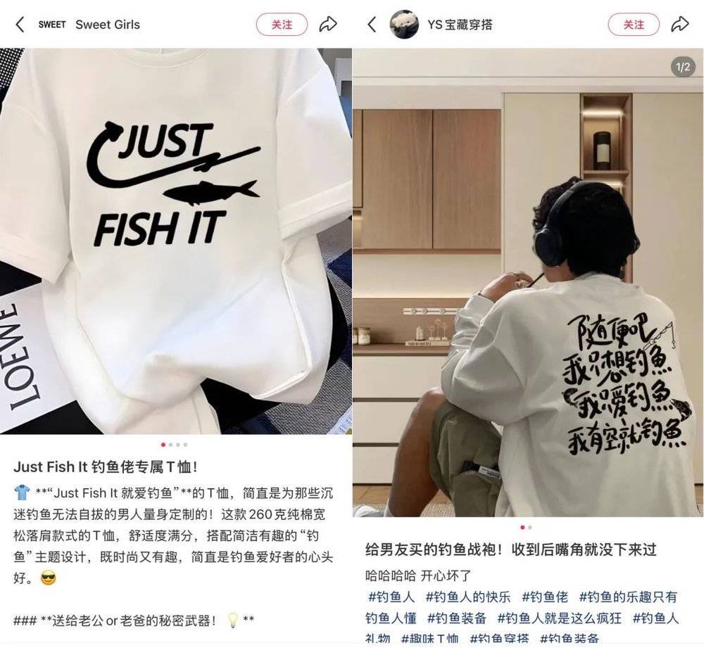 商家精准拿捏了群体认同心理和自我表达的需求,让钓门中人每次穿身上都被一层厚厚的情绪价值包裹。