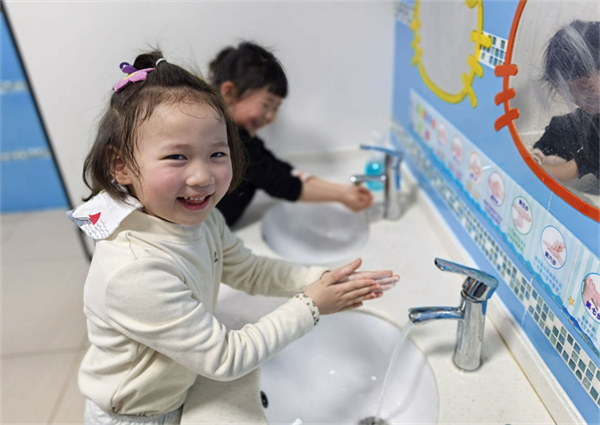 小班教师通过讲述绘本《小水滴去旅行》,引导幼儿了解一滴水也可以滋养一粒种子,一滴水也可以浇灌一棵幼苗,知道节约用水的重要,并示范洗手正确步骤,引导小朋友节约用水,了解淡水的珍贵,唤起孩子们爱水、节水、护水的意识。