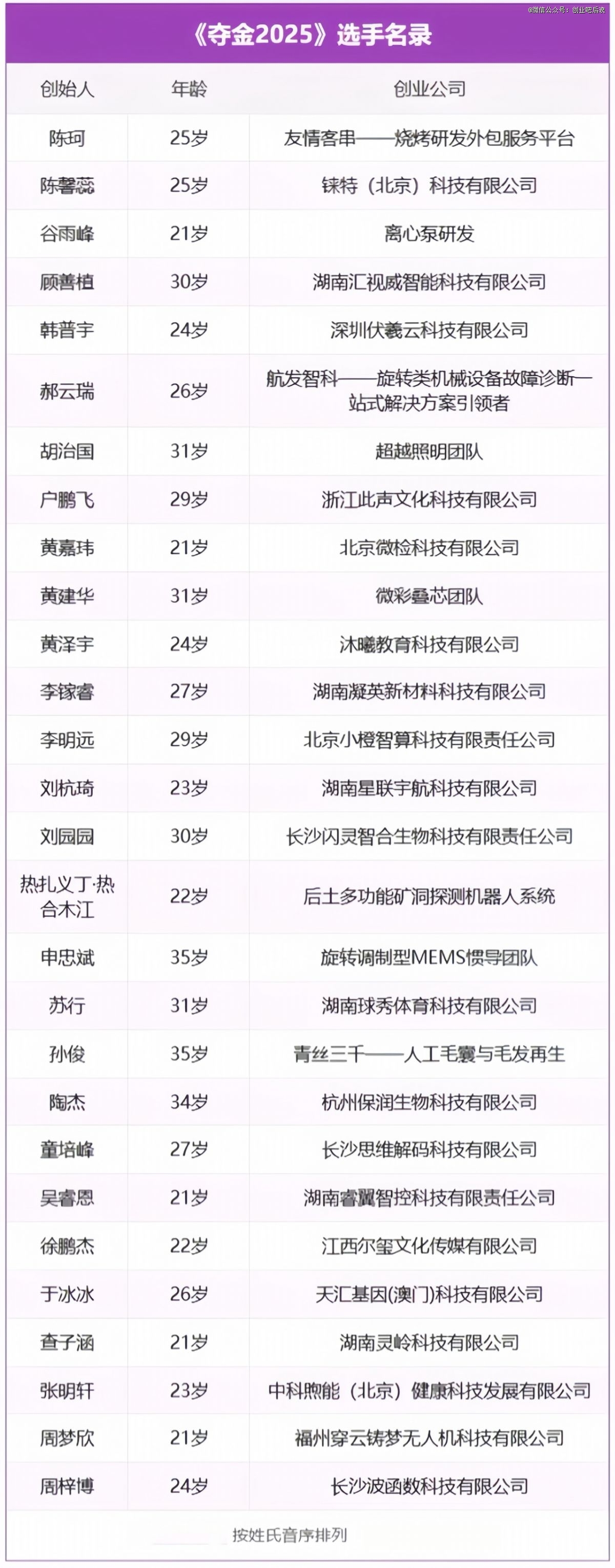 附:湖南卫视《夺金2025》选手名录