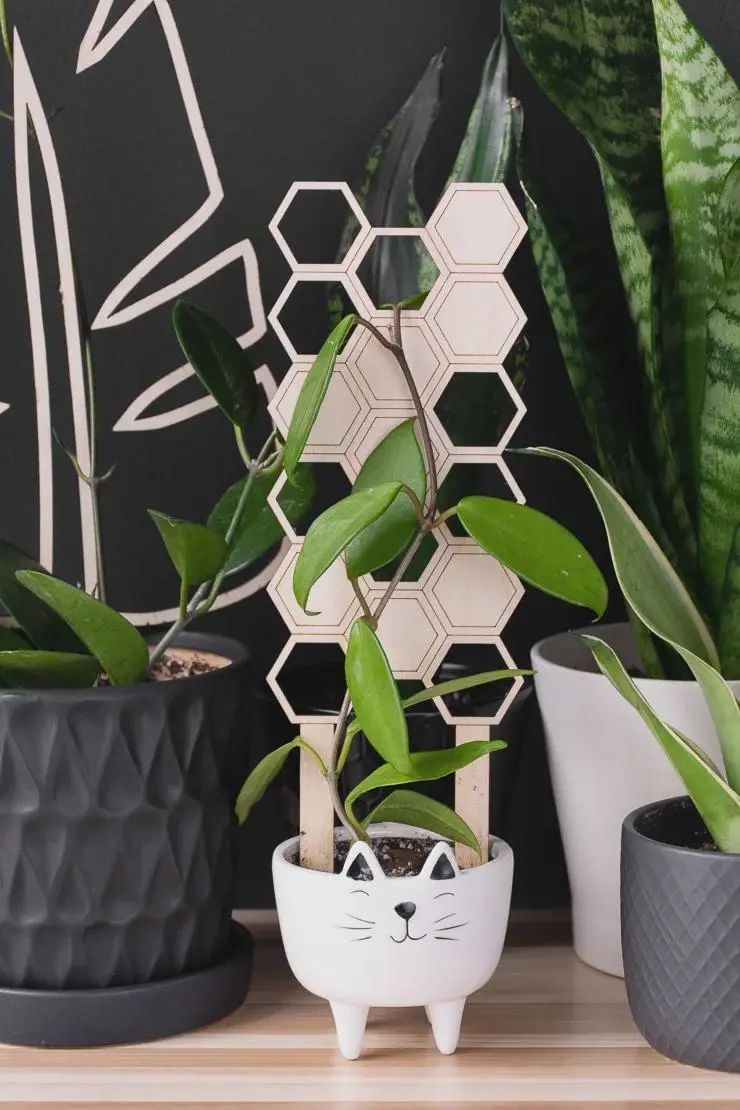 球兰是会爬藤生长的,也可以垂盆养护。就比如养在朝东或朝南的窗台边或阳台上,让它的叶子低垂下来。也可以在花盆中搭设花架,让它攀附生长。但要注意球兰的生长速度是比较缓慢的,养护的时候一定要有耐心。
