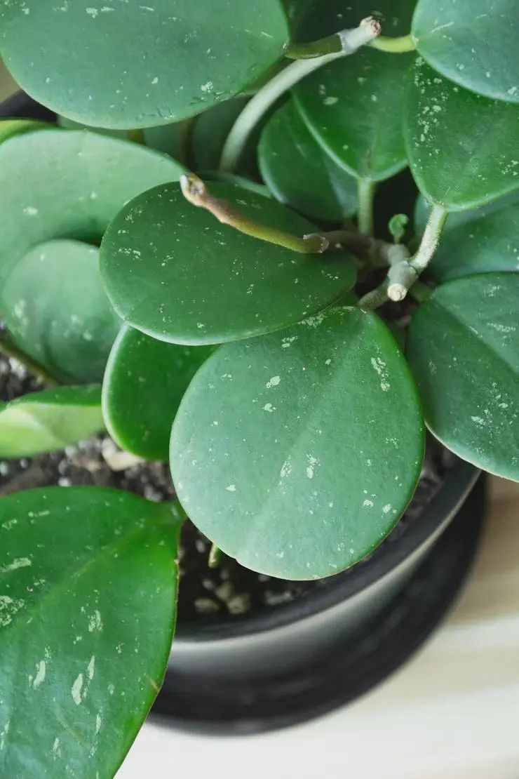 澳洲球兰的叶子特别有光泽,叶片看起来是比较圆润的,也显得更加可爱,它的叶子会低垂生长,茎也会交织生长在一起。