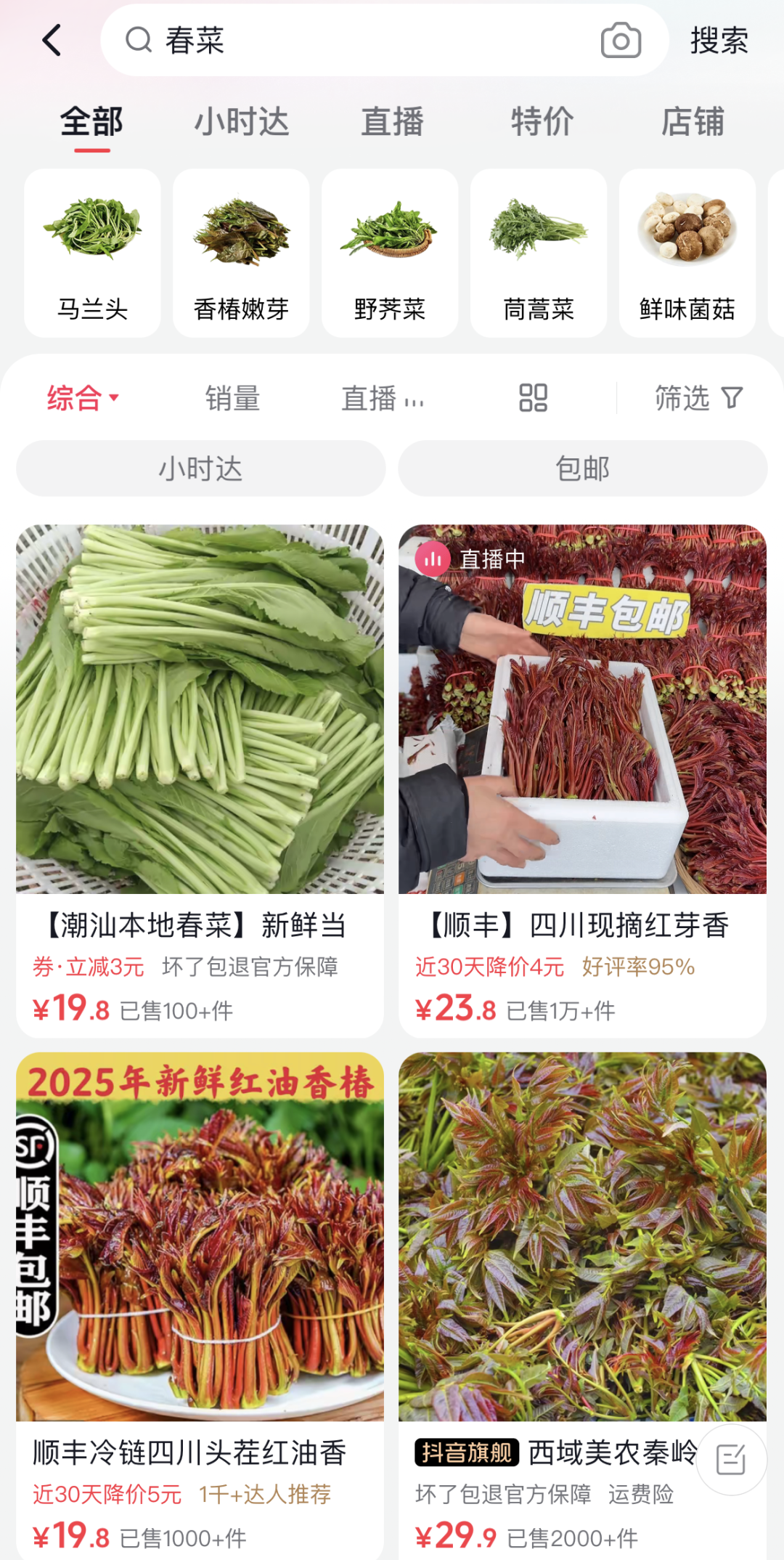随着春天的到来,抖音电商推出了“舌尖上的抖音|第一口春味”活动,消费者在抖音上搜索“第一口春味”,就能购买到平台优选的春季限定美食,包括春菜、春茶和春季糕点。