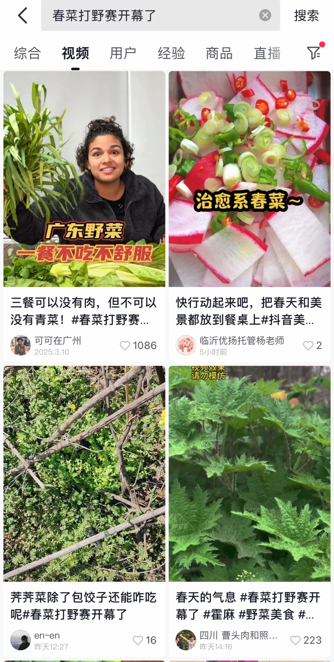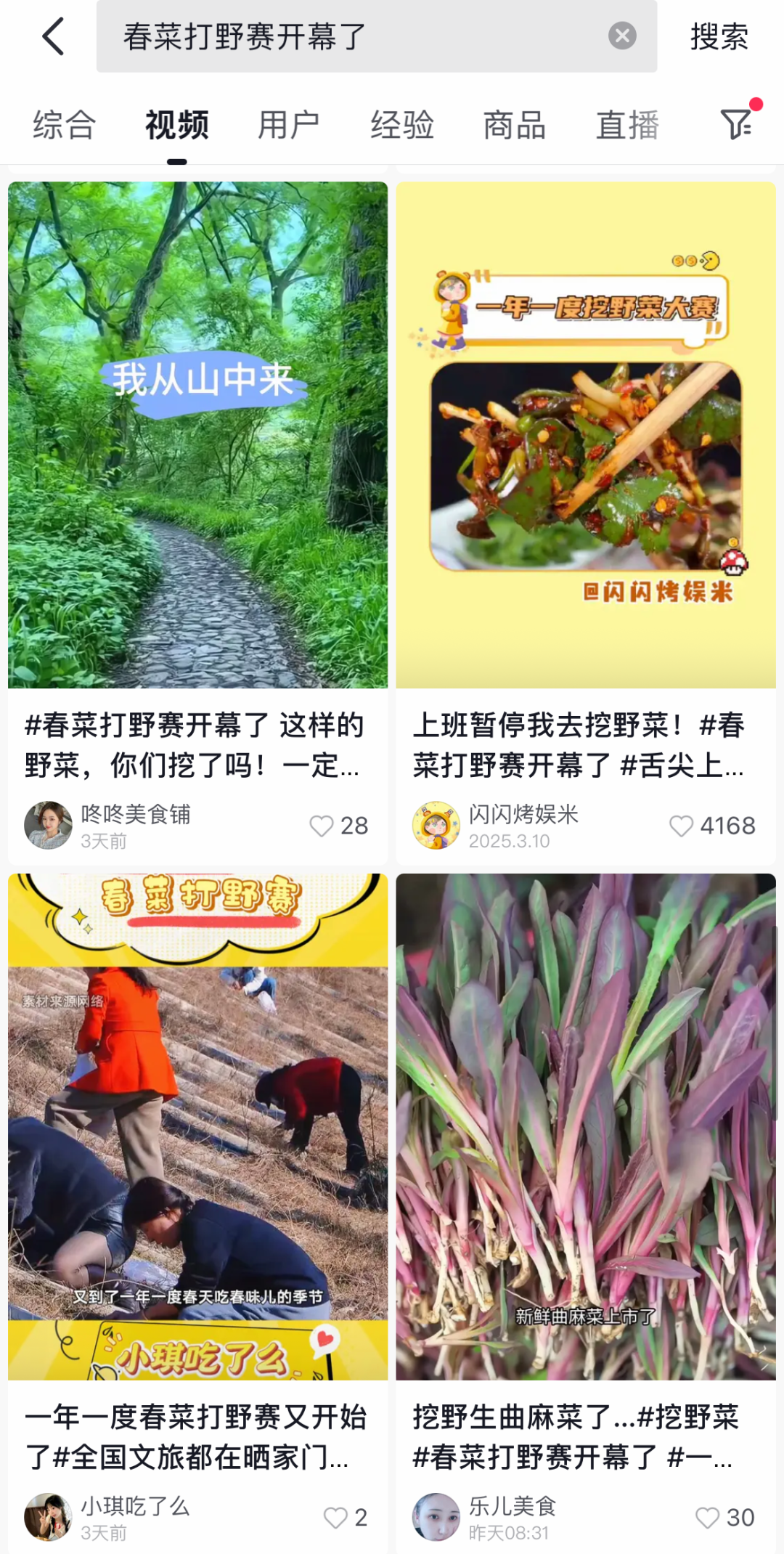 电商还发起了 #第一口春味# 互动话题征文和 #春菜打野赛开幕了#话题,邀请用户分享“咬春”习俗和春菜创新吃法。这些活动极大地激发了网友们的创作欲望,摘野菜、包荠菜饺子、木姜花烤鱼……各种新奇的春季饮食习俗和春菜的创新吃法都涌现在平台上。截至3月18日,相关话题的阅读量已经超过1.2亿!