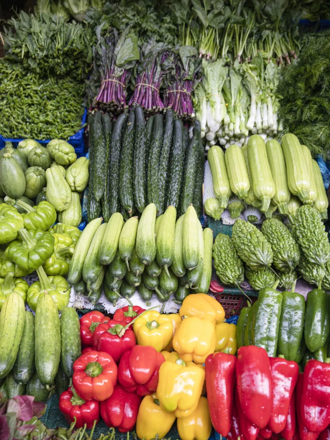 摊位上的菜种类多了,餐桌也要丰富起来了▼