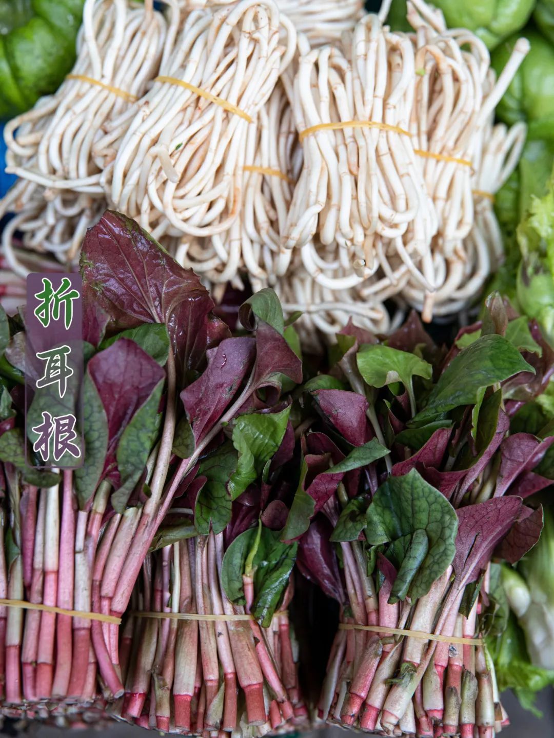 味道独特的折耳根,是西南地区的特色野菜,因其独特的辛香而闻名。折耳根在春季刚冒嫩芽时最为鲜嫩,富含挥发油、黄酮类化合物和多种矿物质,特别适合湿气重的季节吃。