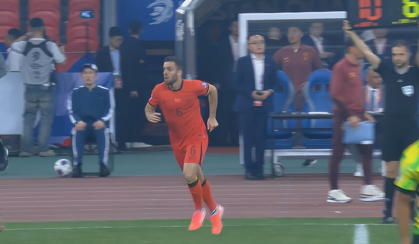 国足在下半场一开场做出换人调整,塞尔吉尼奥换下韦世豪登场,他完成归化后代表中国队的首秀。