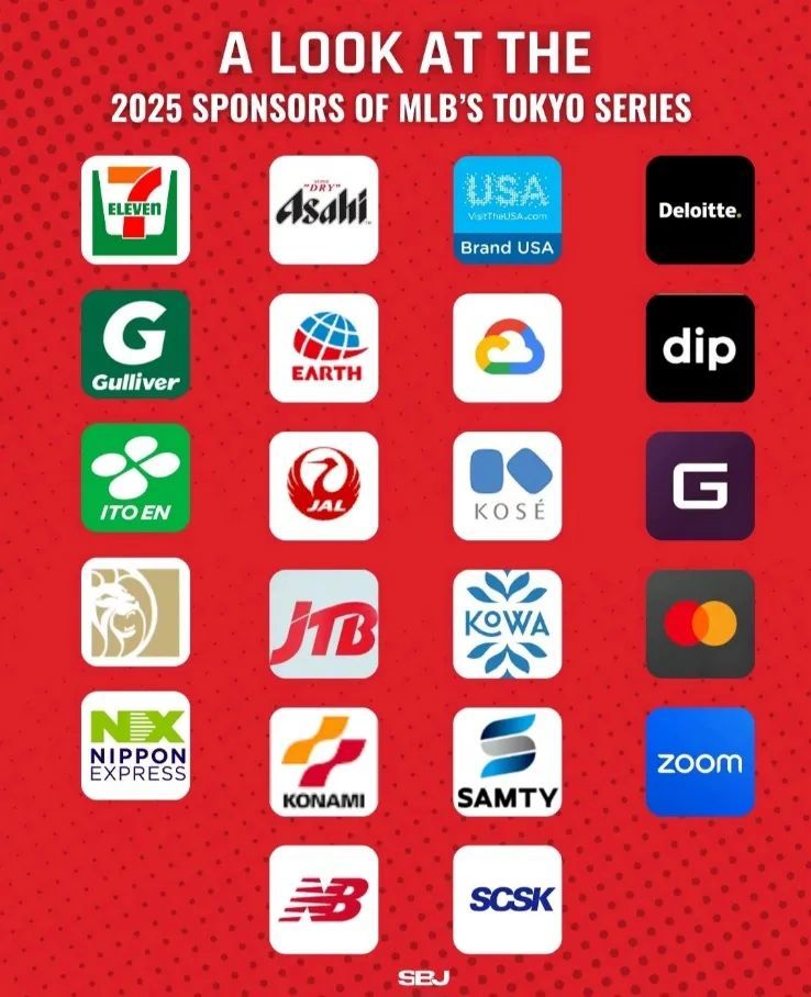 比赛还吸引了新的赞助商,美国职业棒球大联盟MLB官方宣布,已经与 22 家公司签订了今年东京系列赛的赞助合同。此次赞助价值是去年韩国揭幕赛的2.4倍,是迄今为止海外主办市场中最高的赞助价值。现有的联盟赞助商万事达卡(自 1997 年起成为官方赞助商)、谷歌(自 2020 年起)和 Zoom(2023 年)加入了东京系列赛的赞助商名单,此外还有主赞助商古根海姆,其创始人马克·沃尔特是道奇队的控股股东。日本的 NX Nippon Express 也是赞助商之一,其在小熊队的球衣上印上补丁。最引人注目的赞助商之一是 Brand USA,这是 2011 年成立的公私营销合作伙伴关系,旨在宣传美国作为首屈一指的旅游目的地并宣传美国的签证和入境政策。