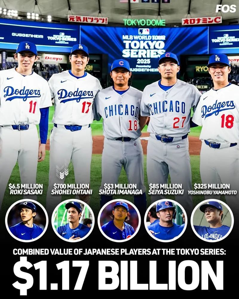 五位日本球员的总身价高达11.8亿美元。图片来自Front Office Sports。