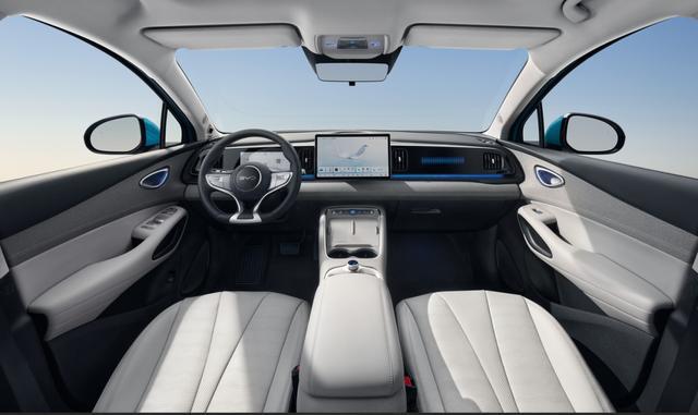 海狮 05EV 的内饰一脉相承海洋美学设计理念,精心勾勒出简约而不失高雅格调的海蕴座舱。主仪表台配备内嵌式 8.8 英寸全液晶仪表与 12.8 英寸高清悬浮 Pad,视野开阔,层次丰富,科技氛围十足。换挡方式上,海狮 05EV 创新采用怀挡式电子换挡,操作便捷流畅,尽显优雅从容。同时,门板等部位选用仿纤维皮革软包材质,触感细腻,经久耐用,不仅提升了座舱的质感,更将美观与实用完美融合。