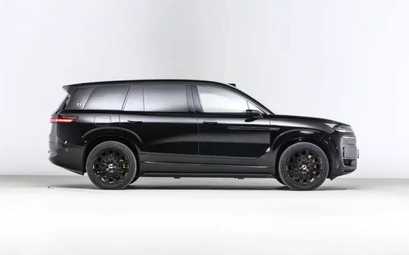 车身整体为传统 SUV 样式,车窗下沿无水切设计,D 柱有品牌标识,隐藏式门把手搭配电动侧踏,兼具美观与实用。车尾双层光源尾灯由多个四边形组成,大尺寸扰流板与隐藏式后雨刷,搭配底部大尺寸银色饰板,让车尾层次丰富。尺寸方面,长宽高为 5258/2030/1830 毫米,轴距达 3125 毫米,相比问界 M9 等同级车型优势明显。