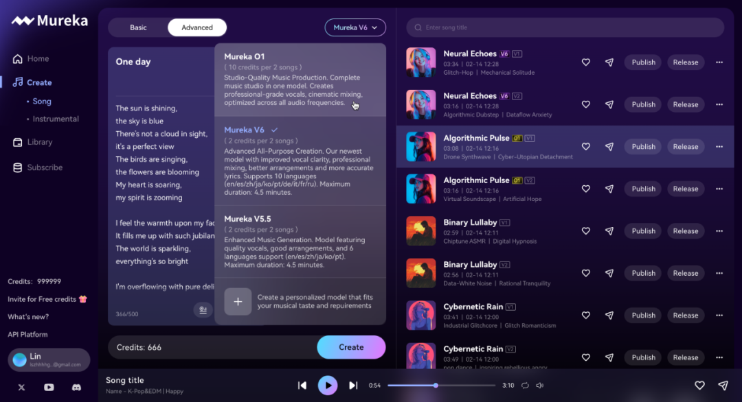 而Mureka O1提供的推理能力,可以让AI站在全局的视角规划一首音乐从无到有的构建过程,避免「走一步算一步」的强行成分,这在实际体验上再造了魔法般的美学功底。