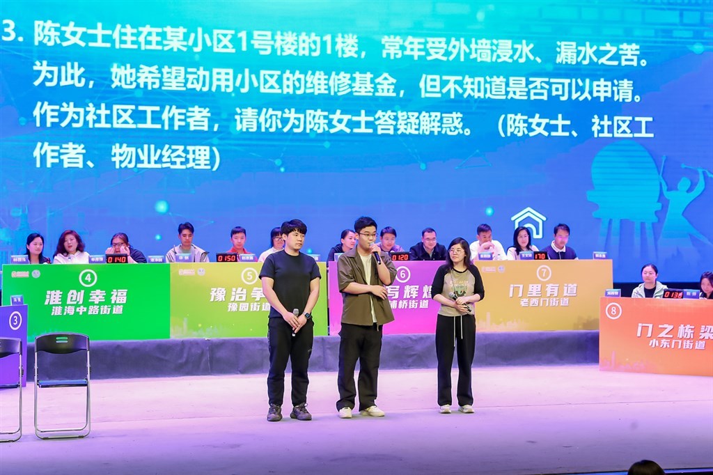 当天的区级复赛由必答题、抢答题、情景演绎三部分组成,重点考察选手的知识储备、快速反应能力和团队协作能力。每一个环节的设置都紧扣社区工作,让选手们充分展示他们的专业性与实战能力。