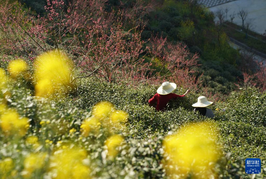 3月25日,紫阳县城关镇塘么子沟村茶农在茶园采茶。